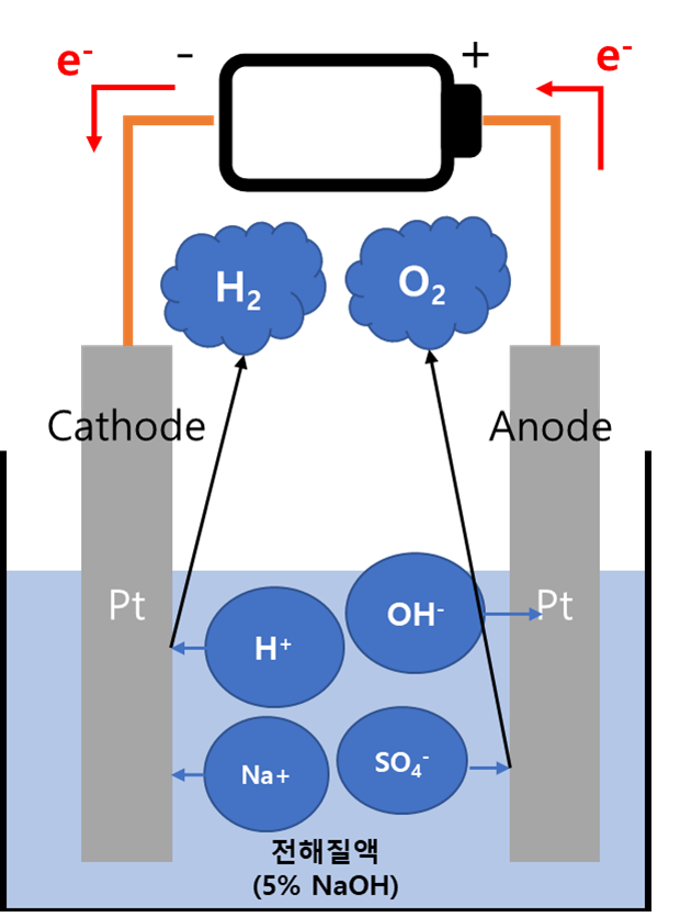 오른쪽 물의 전기분해에서