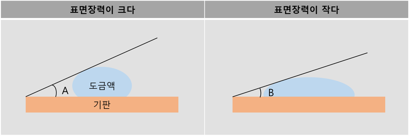 - 계면활성제 : 도금액과 제품사이의 표면장력을 낮게해주는 역활과 도금 전처리(탈지) 과정에서 습윤 침투 역활을 하여기판 표면에 기름때를 제거 한다.
